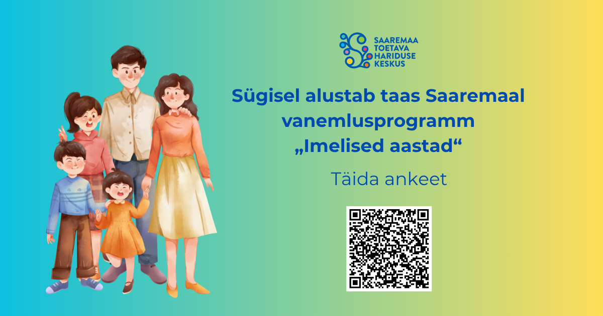 Sügisest on plaanis taas alustada Saaremaal tõenduspõhise vanemlusprogrammiga „Imelised aastad“. Hetkel kogume infot huviliste kohta, et koolitusgruppi paremini planeerida.